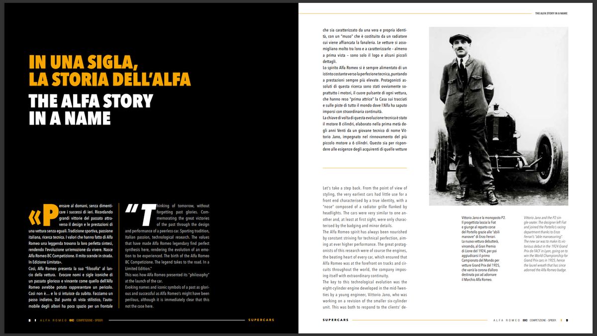 Alfa Romeo 8C - Competizione - Spider è il terzo titolo della collana Supercars, dedicato a queste due Alfa fatte letteralmente su misura. Ampio spazio è dedicato alla storia e all’evoluzione stilistica dei due modelli, con un ampio approfondimento dedicato agli allestimenti interni firmati all’epoca dalla Frau.