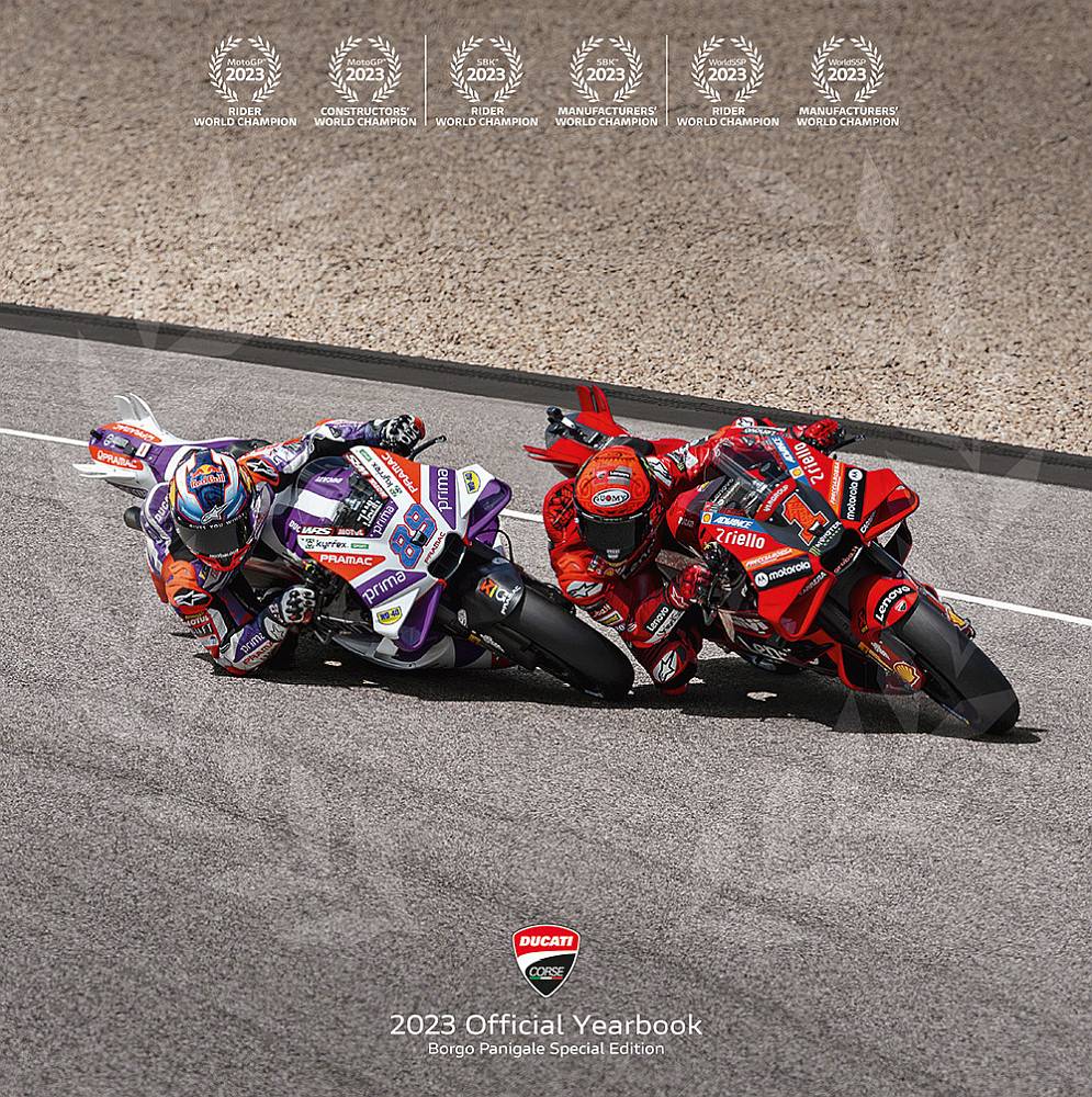 Con il Ducati Corse 2023 Official Yearbook, il Libro ufficiale Ducati Corse 2023, rivivi i momenti più emozionanti della stagione 2023 e le imprese in pista di Pecco Bagnaia, Enea Bastianini, Alvaro Bautista e Michael Ruben Rinaldi.