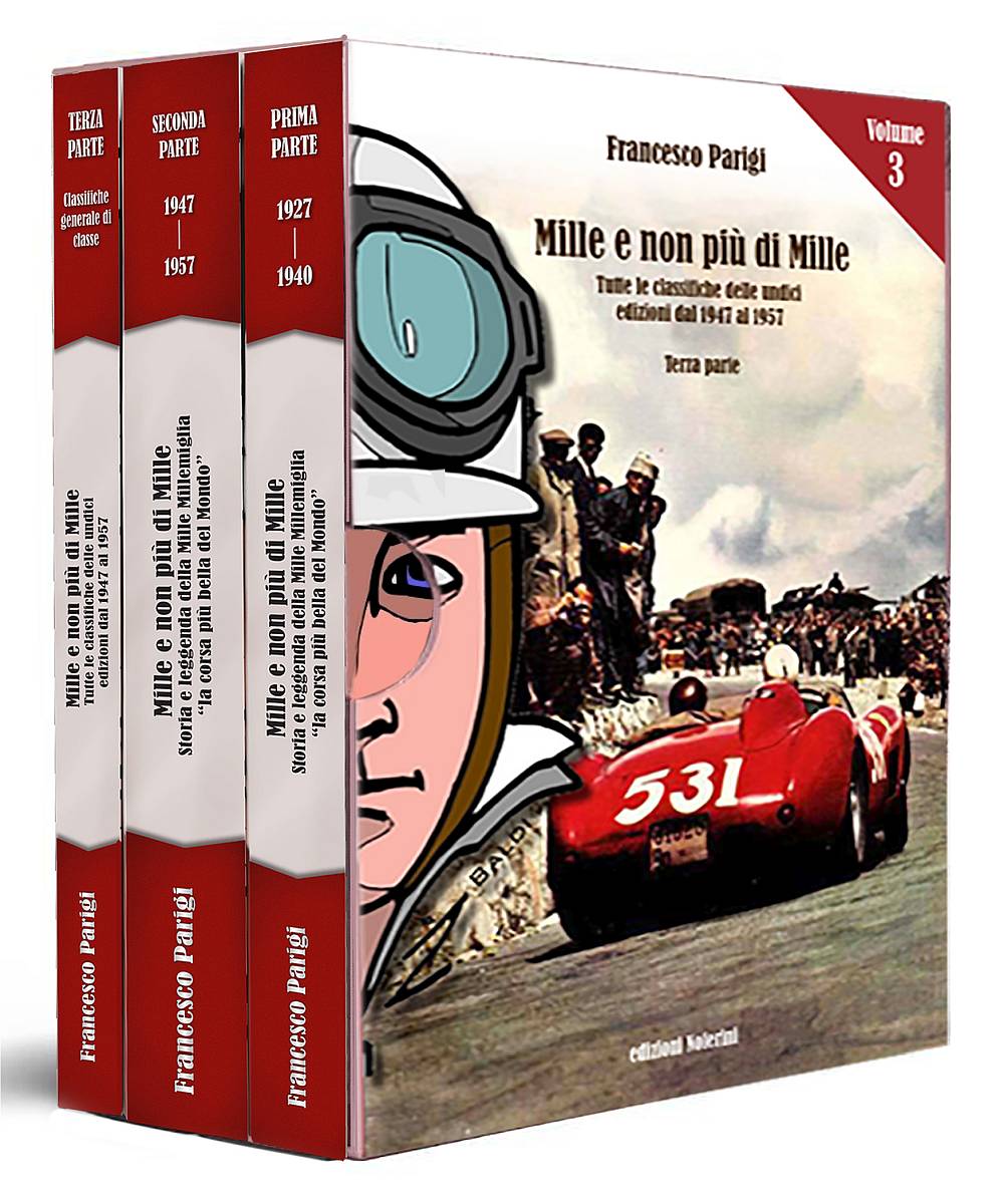 Mille e non più di Mille - Storia e leggenda della Mille Miglia "la corsa più bella del mondo" si presenta come una piccola (solo nel formato) opera omnia che, con le sue quasi 1.200 pagine, ripercorre le ventiquattro edizioni della Mille Miglia svoltesi dal 1927 al 1957, con in mezzo la lunga pausa dovuta al conflitto mondiale.